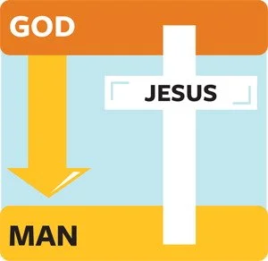 This diagram illustrates that God has bridged the gulf which separates us from Him by sending His Son, Jesus Christ, to die on the cross in our place to pay the penalty for our sins.